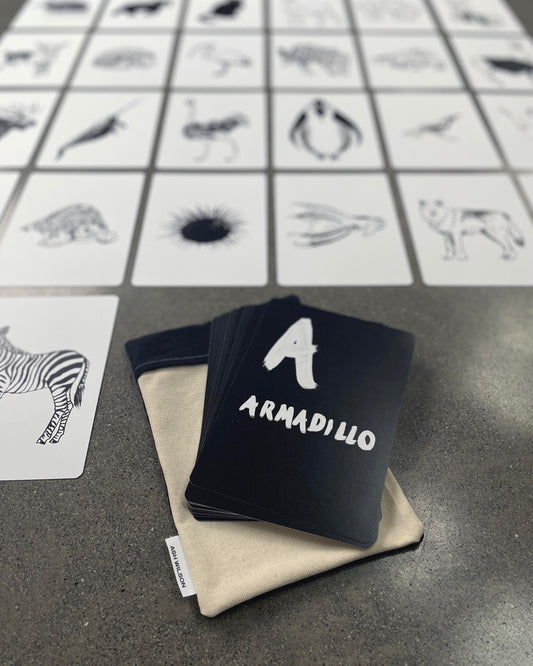 During my years as a nanny and art instructor, I found that children are far more capable and eager to learn than kid's shows, book and toys often give them credit for. This led me to create my first flashcard set. I intentionally avoided the use of over-simplified cartoony digital art and instead featured hand-painted unique animals to challenge and excite young minds.
